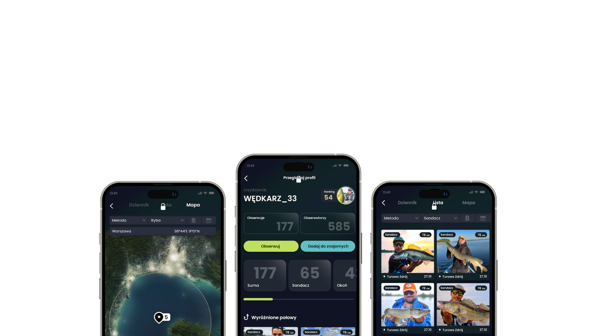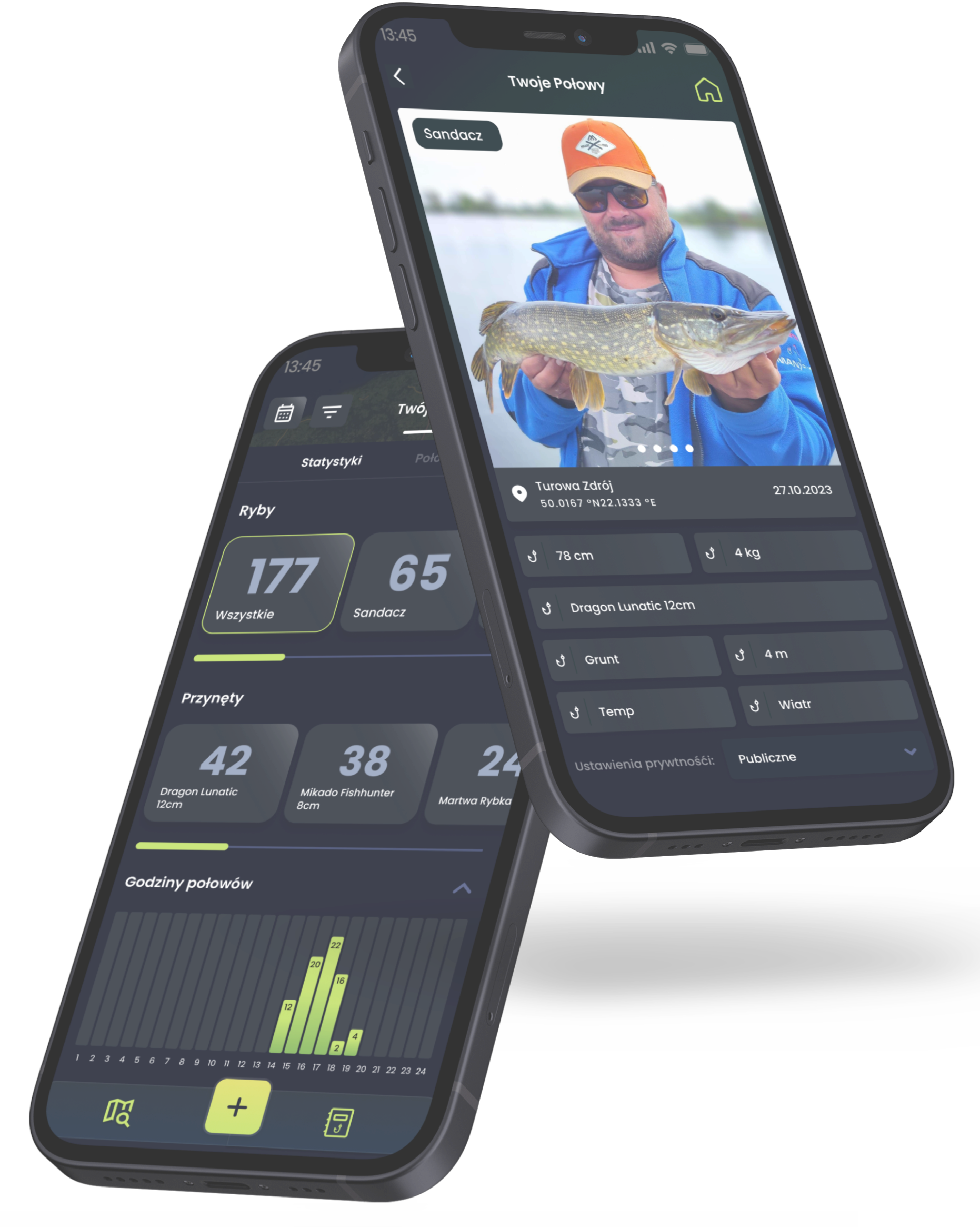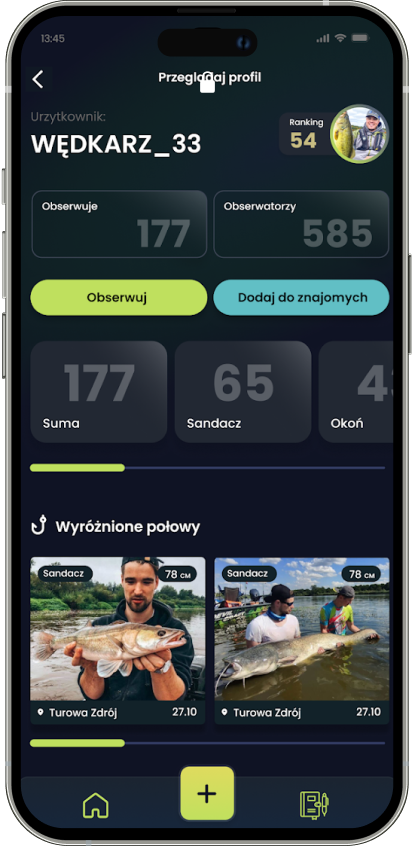 Odkrywaj najskuteczniejsze przynęty, najlepsze warunki pogodowe, najlepszych wędkarzy w okolicy i buduj statystyki swoich połowów!